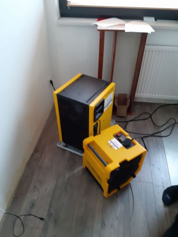 Profesjonalne osuszacze powietrza (przez niektórych nazywane osuszcze ścian) szybko powinny zbić wilgotność w pomieszczeniu do ok. 30-35%. Dzięki tak niskim parametrom ściana powoli zacznie parować i oddawać wilgoć. Jeżeli ściany są pomalowane to najrozsądniej jest usunąć farbę - tyczy się to głównie farb zmywalnych, które działają jak folia i uniemożliwiają efektywne parowanie, a co za tym idzie osuszanie ściany. W przypadku bardzo mocnych zalań konieczne może okazać się skucie części tynków.